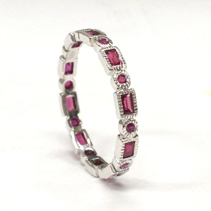 Ruby Round With 0.22Ct Round Brilliant Diamond Half Eternity Ring In 18K Yellow Gold